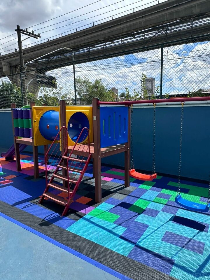 5. Brinquedoteca coberta para bebês e playground ao ar livre para as crianças se divertirem com segurança;