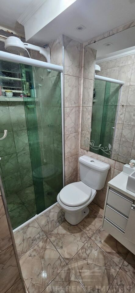 Banheiro social com box de vidro e espelho grande