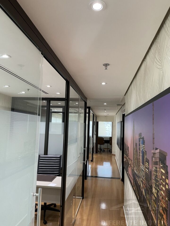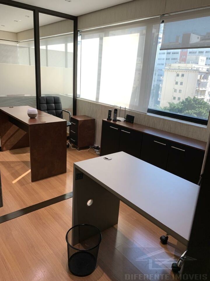 Dois conjuntos comerciais contíguos, finamente mobiliados com tudo pronto para a instalação de escritório. Área útil 88 m2, total 207,51 m2. 6 salas incluindo uma de reunião, 2 banheiros, copa, 3 vagas na garagem, ar condicionado. Porta de vidro fumê com fechadura eletrônica. Câmeras de segurança. Condomínio de alto padrão, com recepção 24hrs. Excelente localização na Av. Angélica, próximo à av. Higienópolis.