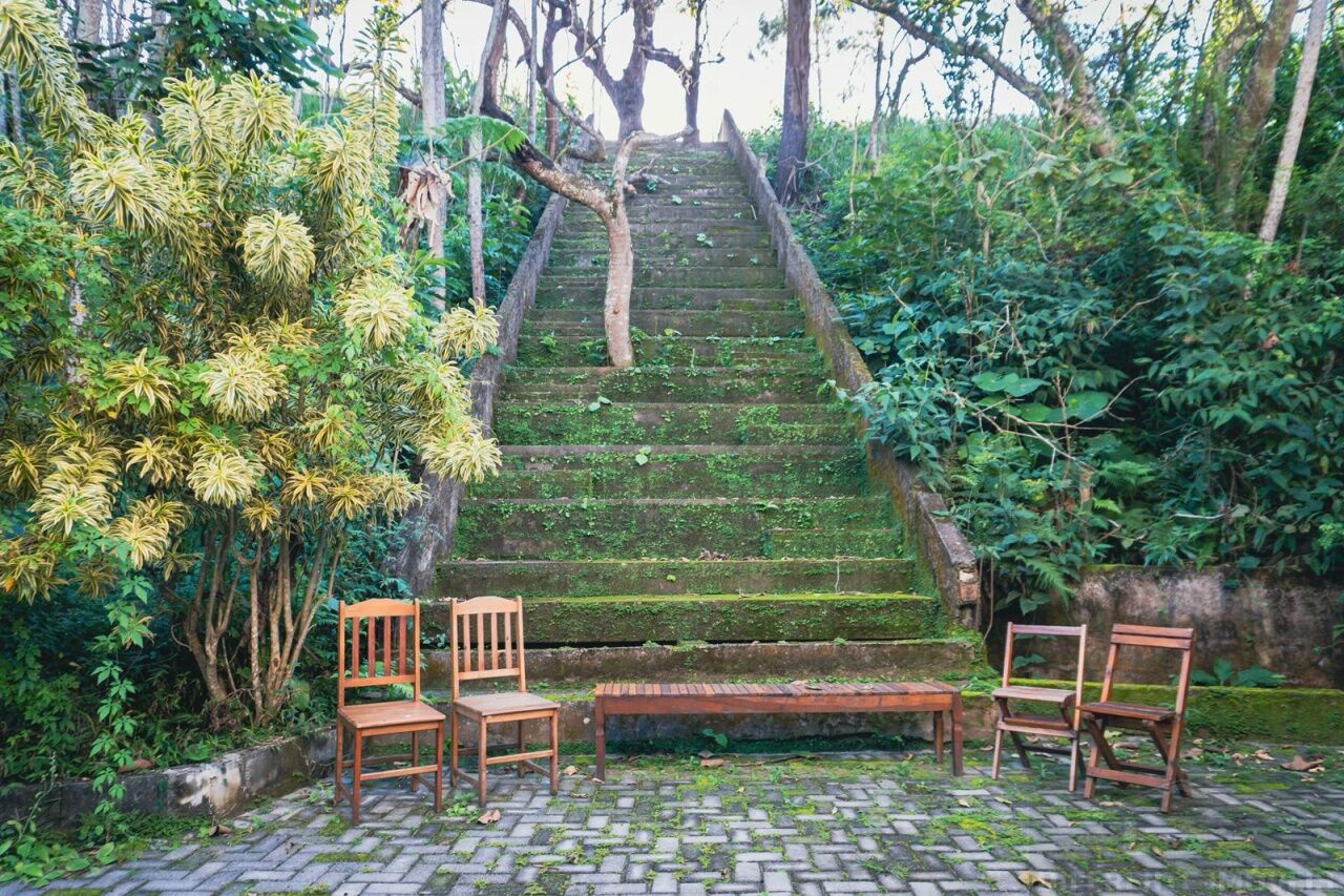 Restaurante ou pousada em meio à natureza.